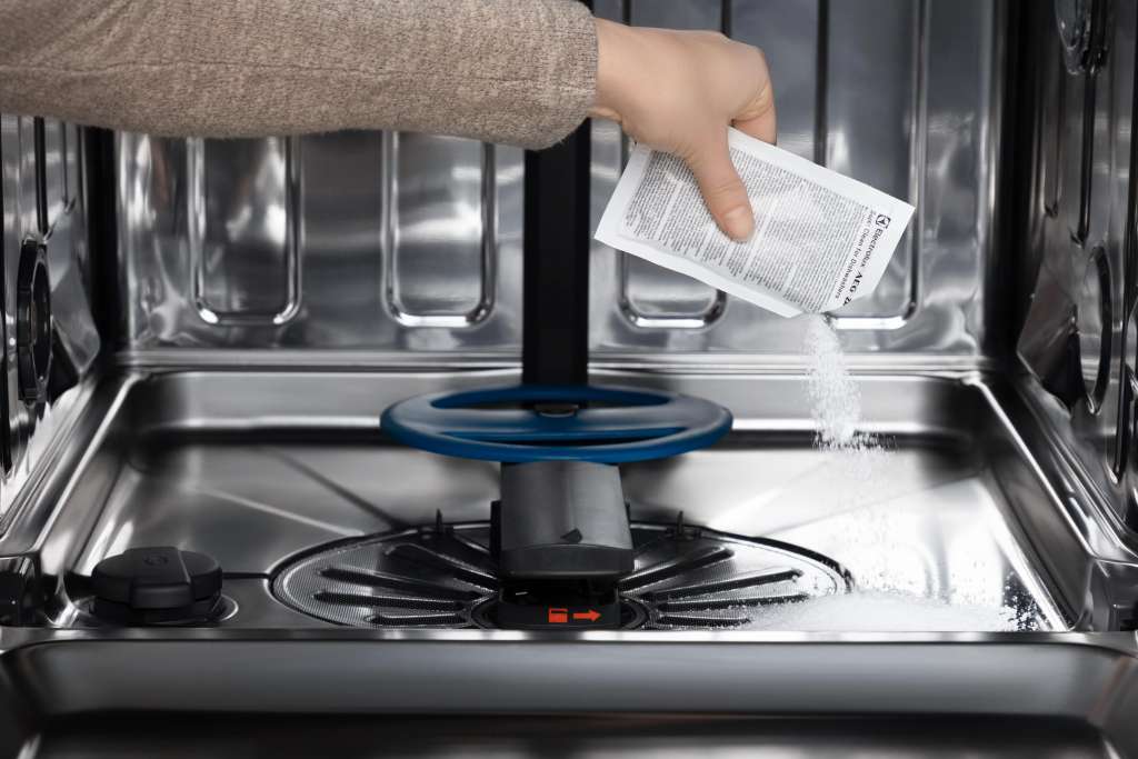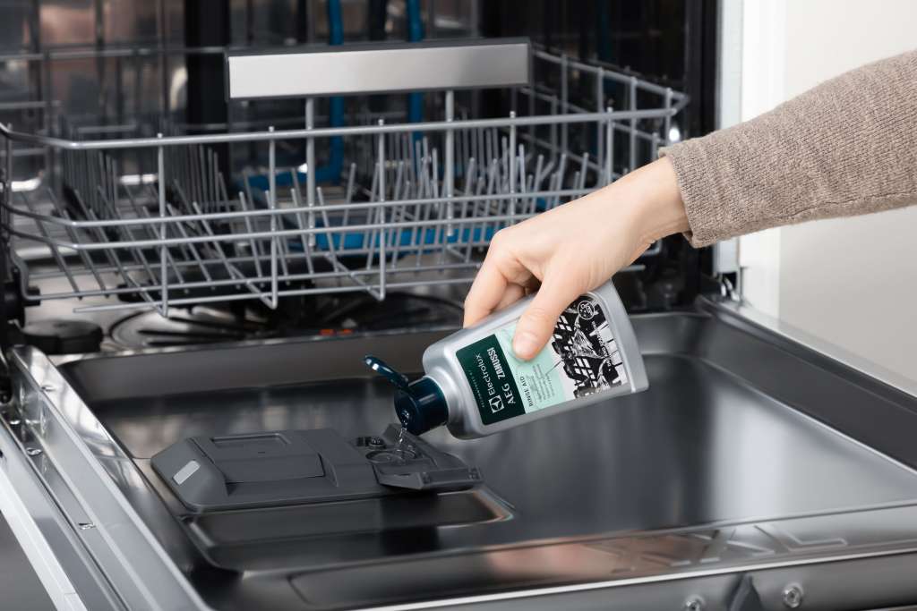 Tako kot druge naprave v vašem domu je tudi pomivalni stroj treba redno čistiti, zato je najbolje, da ga enkrat na mesec temeljito očistite, vključno z alkalnim izpiranjem in čiščenjem odtočnega sifona. To lahko storite tako, da napolnite skodelico ali posodo, primerno za pomivanje v pomivalnem stroju, z belim kisom in jo postavite na zgornjo polico pomivalnega stroja. Nato prazen pomivalni stroj zaženite na najbolj vročo nastavitev. Če ne marate vonja po kisu, lahko po dnu pomivalnega stroja potresete eno skodelico sode bikarbone in namesto tega perete v ciklu z vročo vodo. Če želite očistiti odtočni sifon, ga odstranite in razstavite ter – ko je razstavljen – z gobo ali zobno ščetko in čistilom za posodo odstranite vse prilepljene koščke hrane ali plesni.