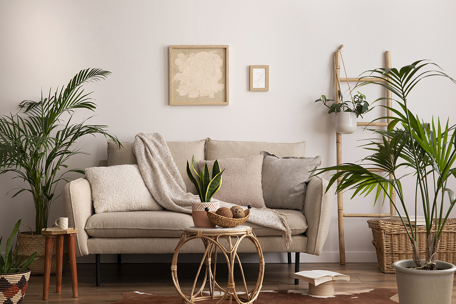 Naravni svet nam ponuja neskončno navdiha za umirjeno oblikovanje. Preprost način, kako v prostor vnesti zunanji svet, je, da prostor napolnite z rastlinami. Priporočamo, da izberete različne rastline z nizkimi potrebami po vzdrževanju: zamijo, monstero, fikus in sukulente. Zapolnitev prostora z zelenjem dobesedno vnese zunanjost v vaš dom, hkrati pa tudi navdihuje in spodbuja, da v prostor vključite druge barve, teksture in materiale, ki jih navdihuje narava. Če se vam zdi, da so rastline preveč obremenjujoče, začnite z manjšimi. Svoj prostor oživite s svežim cvetjem kot čudovitim dotikom narave.