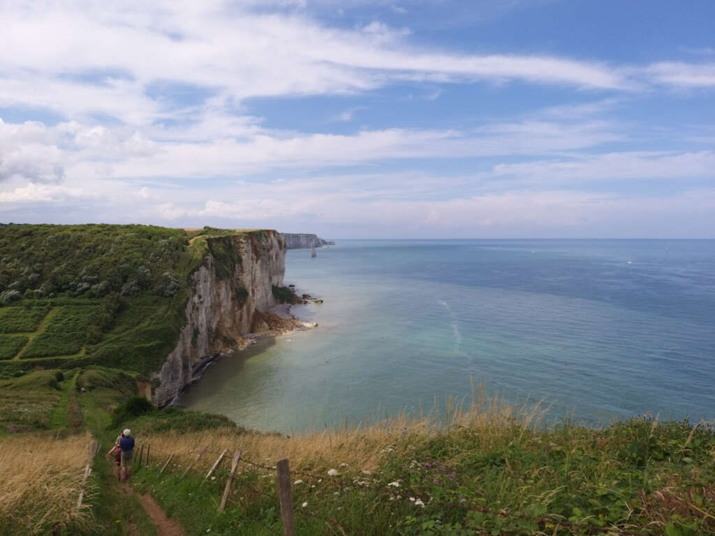 Na Alabastrni obali so sicer najbolj znani klifi v Étretatu, a se tam zaradi nepredstavljive gneče ni dalo parkirati, zato sva preprosto zavila po makadamu čez polja in bele klife raziskovala iz sosednjega zaliva. Ena od stvari, ki me je najbolj navdušila, je, da so po Franciji skoraj na vseh obalah, rtih in klifih speljane pohodne stezice med travo in resjem, po katerih se lahko preganjaš ure in ure ali uloviš le kakšen razgled. Sprejet imajo namreč zakon, da morajo tudi priobalni lastniki ljudem zagotoviti služnostno pot do morja, tako se uhojene poti vijejo na stotine kilometrov daleč in so primerne tudi za treking iz enega do drugega čudovitega zaliva.