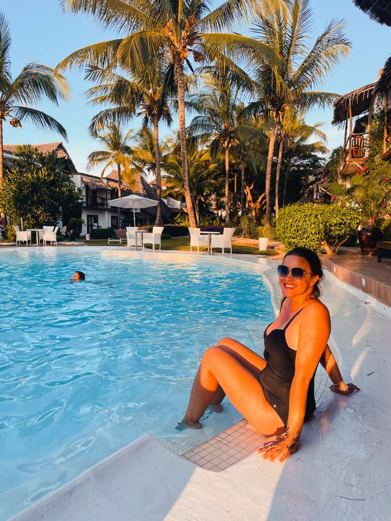 En postanek je bil v Dubaju, potem pa smo v zelo zgodnjih jutranjih urah prileteli na Zanzibar. Bila je tema, tam nas je čakal šofer, ki smo ga predhodno organizirali in nas odpeljal do naše nastanitve v Jambianiju (živeli smo pri Slovenki Nataliji, ki oddaja apartmaje). Po prihodu smo, milo rečeno, doživeli kulturni šok. Že ko prideš na Zanzibar, si zelo presenečen. Saj približno veš, kaj pričakovati, ker si seveda vse to pogledaš na spletu, ampak realna slika je dosti bolj drugačna kot je na slikah. O prometu ne bom izgubljala besed, saj vsi vozijo en povprek drugega, da niti ne veš, ali naj bi vozil po levi ali po desni. Vmes je še kakšna krava na cesti, pa še kakšen otrok, ki je komaj shodil … Skratka, Bog se usmili. Če se boste odločili, da tam najamete avto in greste naokrog sami, vam jaz samo čestitam in rečem, da ste zelo pogumni. Jaz pač tako pogumen popotnik nisem. Morda, če bi bila sama, a z otroki absolutno ne.