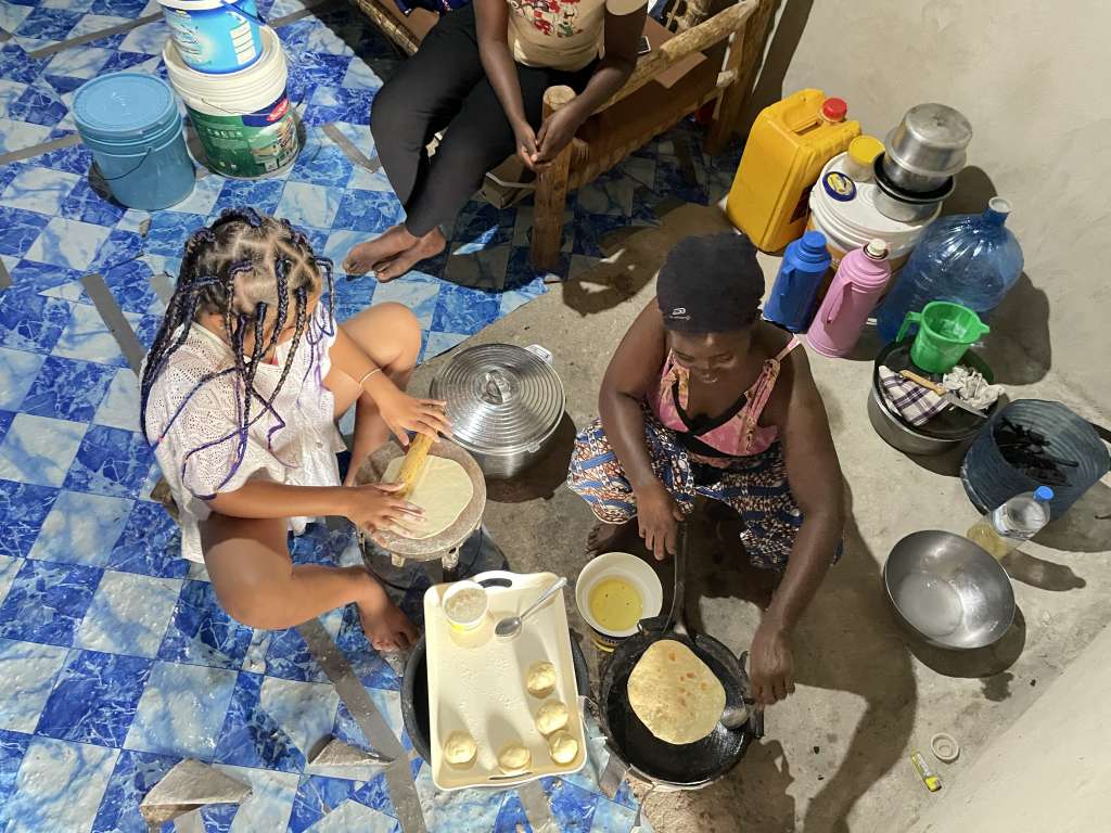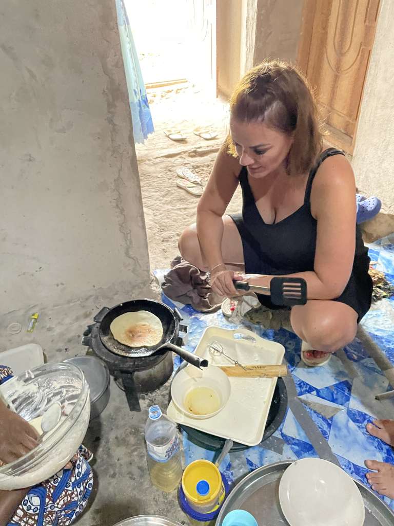 Tudi naša nastanitev je bila precej skromna, če bi se malce politično izrazila. Spali smo v sobi, ki nima oken in ima na odprtinah za okna samo mrežo, nismo imeli pohištva. Mislim, da smo bili tam štiri dni, ko smo pohištvo (beri: police) nato dobili. Postelje so bile v prostoru, ampak to je pa tudi vse. Kuhinja je bila zunanja, mivka nas je spremljala vsepovsod. V kozarcih, na krožnikih, v posodah in loncih… Lastnica se je sicer resnično trudila, da je čistila sproti, nenehno je pometala, čeprav ni bilo nič kaj dosti razlike. Predvsem zato, ker je enostavno toliko peska v zraku, da je kuhinja iz minute v minuto pač umazana.