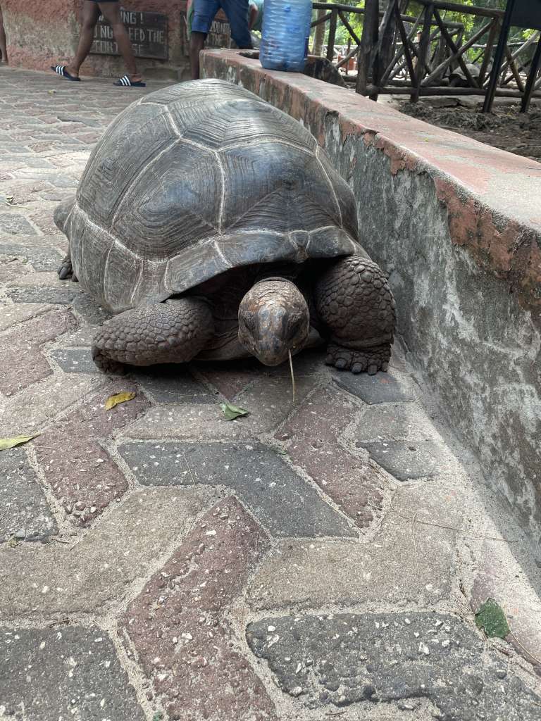 Mi smo našo pot nadaljevali na Prison Island, kamor greš z ladjico. To je otok, kjer boste srečali orjaške želve. Slikanje s temi orjaškimi želvami je seveda tudi posebnost Zanzibarja. No pa vračanje potem nazaj po največjih valovih vseh časov – oh, ja. Zabavno, sploh za moje živce, ampak hej – vsi smo živi in zdravi!