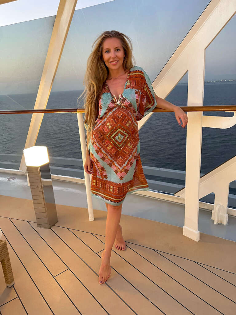 MSC križarko Bellissimo že dobro poznamo, ker smo z njo križarili po Mediteranu. Gre za križarko, ki je prvič izplula 2018, tako da je relativno nova in v odlični kondiciji. Mi smo bili v 2018 prav tako med prvimi gosti na njej, ko smo pluli po Mediteranu, zato to ladjo res dobro poznamo. Dolga je 315 metrov in široka 43 metrov. Premore kar 2.217 kabin in 5.686 gostov. Kar je dejansko pravo malo mesto, ki ima 18 nadstropij. Ponuja ogromno restavracij, na ladji imajo shopping street, čokoladnico, celo mocarelo sami proizvajajo. Velikost sobe je odvisna od tega kaj rezerviramo. Nam običajno najbolj ustreza kabina z balkonom, tokrat pa smo bili deležni Yachtclub storitve, ki jo ponuja MSC in dejansko gre za ladjo v ladji. Posebna cona, kjer je dostop samo s kartico in res vrhunskimi storitvami servisa. Imaš posebno restavracijo, neomejen internet (ki je na ladji lahko zelo drag), all inclusive pijačo in hrano, skratka res storitev, ki je še nisem bila deležna in je res enkratna izkušnja, ki je nikoli ne bom pozabila.