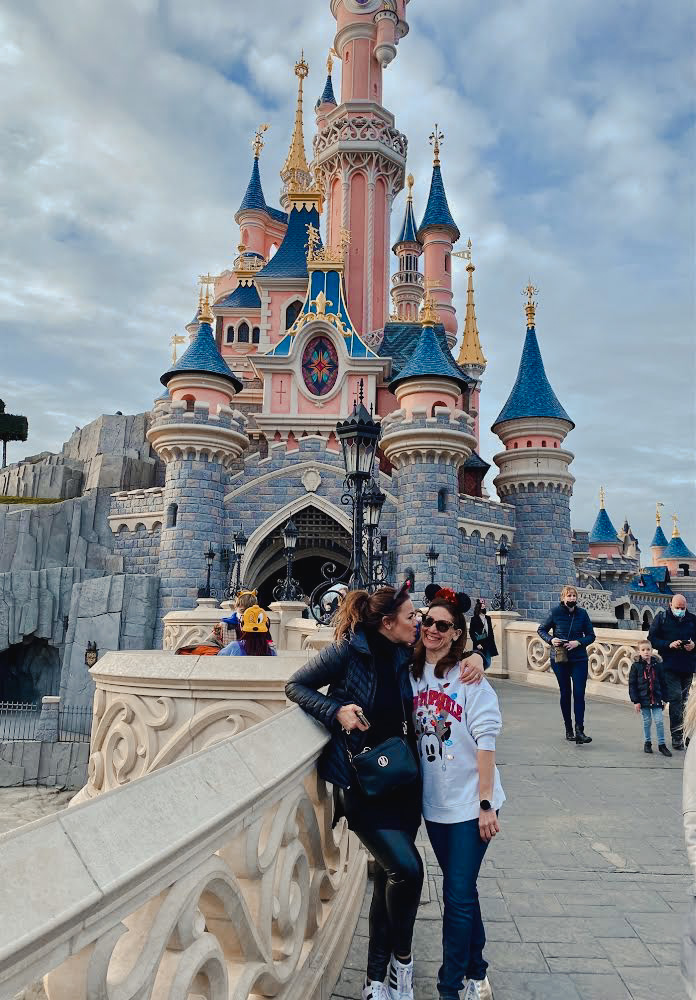 Mišja ušeska so na naših glavah. Dobra volja v žepu. Karte imamo, covid potrdilo tudi, denar, telefon. To je to. Zame in moja dekleta. Rebeka je pa zelo skrbna mama, ki vzame s sabo še poln nahrbtnik za preživetje. Če bo Sija žejna, lačna, da bo Šajana imela tudi kaj brezglutenskega, še kakšne igračke, stvari za preobleči … Avtobus nas v treh minutah pripelje pred vhod in že velik napis DISNEYLAND nam vsem nariše nasmeh na obraz in gremo veselo naprej. Uf. Prvo razočaranje. A so se res vsi ljudje tega sveta ravno na današnji dan odločili, da gredo pogledat, kje sta doma Miki in Mini Miška in vsi njuni prijatelji? Množica ljudi se vali proti vhodu. 🙁 Nam le uspe priti noter. Drugo razočaranje. Kakšne gneče pri vsaki atrakciji. Najmanj uro in pol moremo čakati, da potem uživamo tisto minutko na atrakciji. Ah.