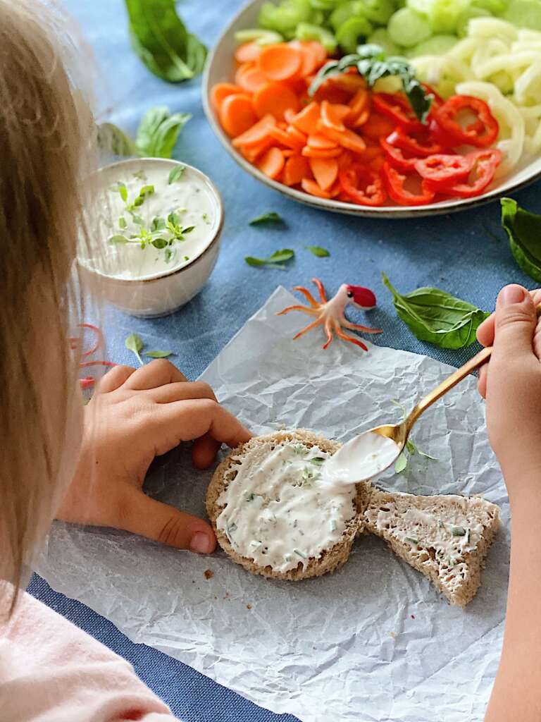 Rada si vzamem čas in otroka spustim v svojo kuhinjo, da skupaj spoznavamo, ustvarjamo in okušamo različne jedi. Prav zanimivo ju je opazovati, kako veliko se lahko naučita iz tako preprostih opravil. Tokrat smo se lotili enostavne zdrave malice, pripravljene iz zdravega polnozrnatega kruha, namaza iz kisle smetane z zelišči in veliko različne zelenjave, ki je na koncu dobila obliko ribice. In ne boste verjeli, kako motivacijsko, zabavno, poučno in ustvarjalno je minilo teh nekaj uric. Poleg tega pa sta se oba do sitega najedla zelenjave, ki se je sicer ne bi niti dotaknila ter neizmerno uživala v svežih okusih. »Mami, te ribice so pa res zelo dobre« sta večkrat dejala s polnimi usti. In tako je bilo zadovoljstvo obojestransko, saj me otroka že cukata za rokav in sprašujeta katero živalco bomo ustvarjali naslednjič!