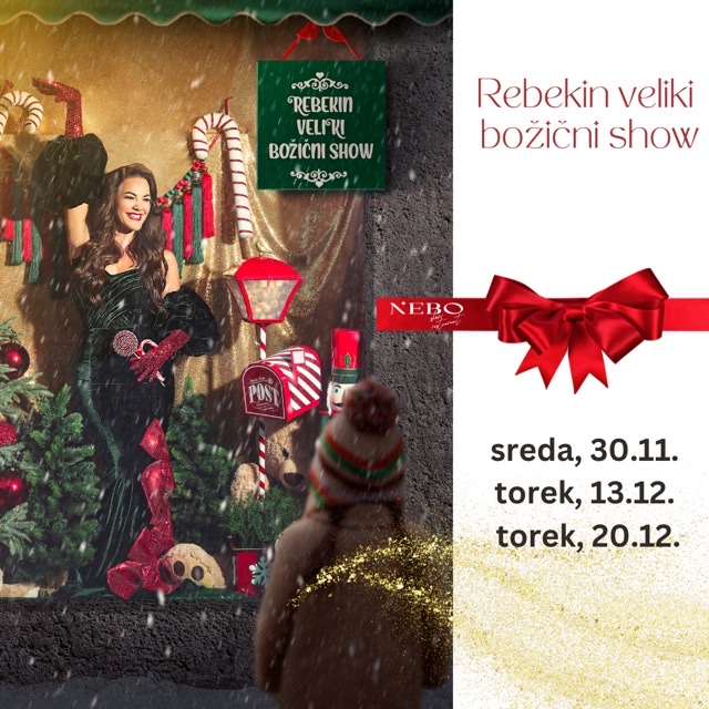 Pridružite se Rebeki, njeni spremljevalni skupini, tudi kakšnemu gostu presenečenja v šov-restavraciji Nebo. Čakajo vas znani praznični napevi, vrhunska kulinarika, drobne božične skrivnosti, ingverjevi piškotki, kuhano vino, škratki, Božičkove pomočnice, praznična glasba in ples. Skratka vse, kar potrebujete, da vstopite v praznične dni.