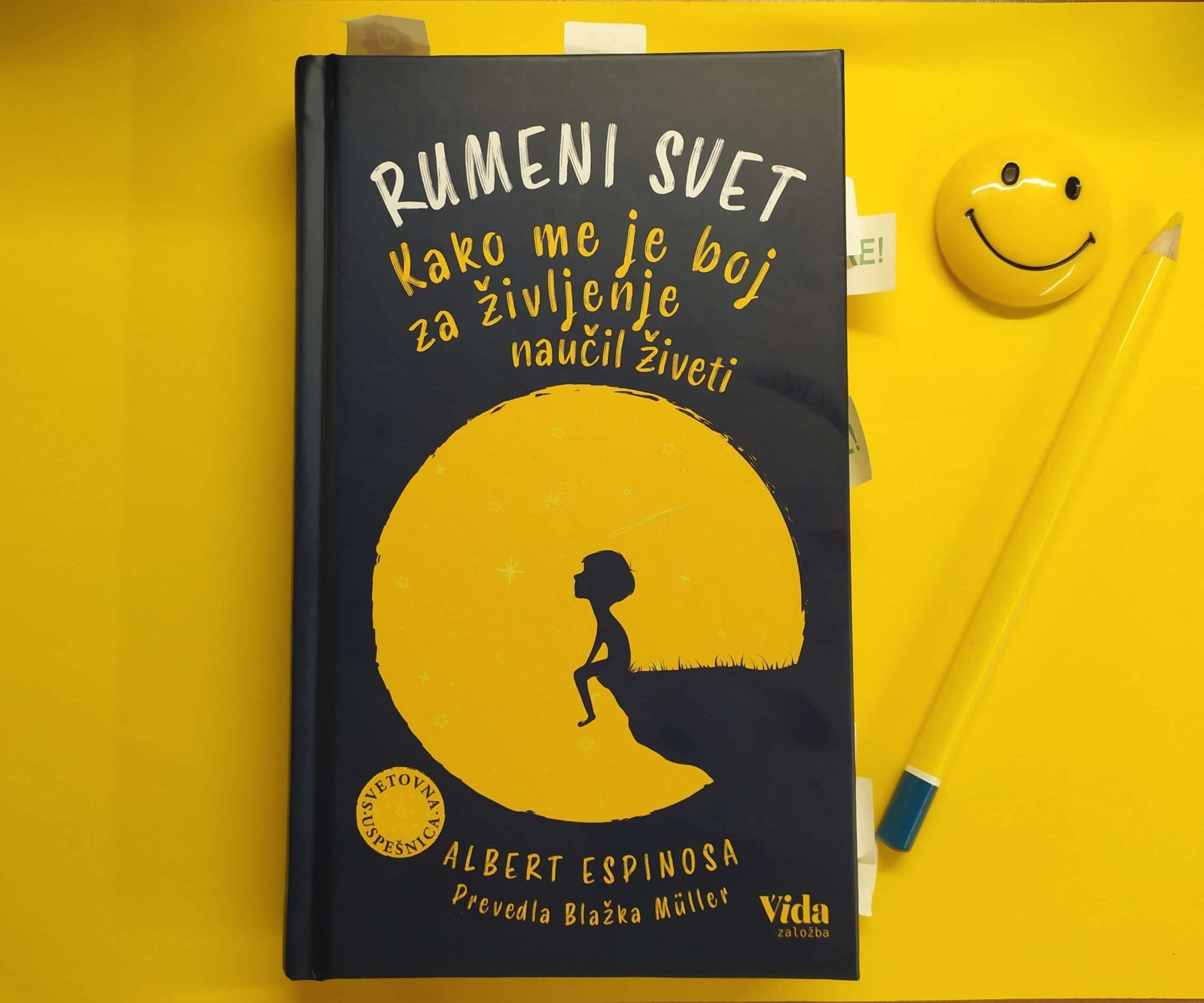Albert Espinosa ni želel napisati knjige o tem, kako preživeti raka. Niti ni želel napisati knjige za samopomoč. Namesto tega je napisal knjigo o rumenem svetu, svetu, ki je vsem dosegljiv.
