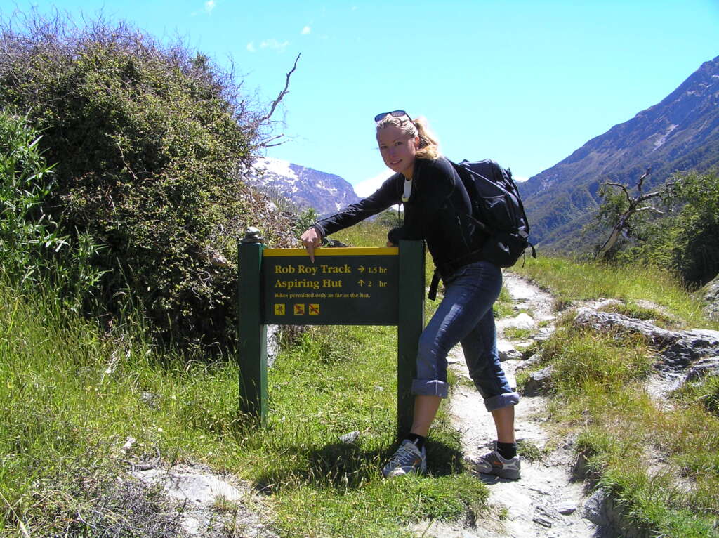 V informacijskem centru Wanake so nama svetovali vzpon na 1600 metrov visok Rob Roy in nama dali zemljevid. Tja sva se podali po visečih mostovih nad deročo reko in imeli priložnost opazovati prečudovito pokrajino. Pot ni bila enostavna, bila je dolga in strma, ampak z dobro voljo nama je uspelo.