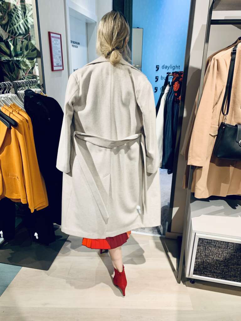 Tudi ta elegantni plašč izraža prefinjenost, ženstvenost in se odlično dopolnjuje z vsemi modnimi kombinacijami. Kajti prav to je najpomembnejše – ujemanje spodnjih in vrhnjih oblačil.